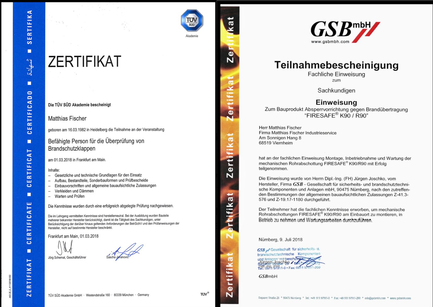 Unsere zertifizierten Mitarbeiter überprüfen Ihre GSB Firesafe/Brandschutzklappen K90, II K90 & R90 und weitere Brandschutzklappen fachgerecht.
